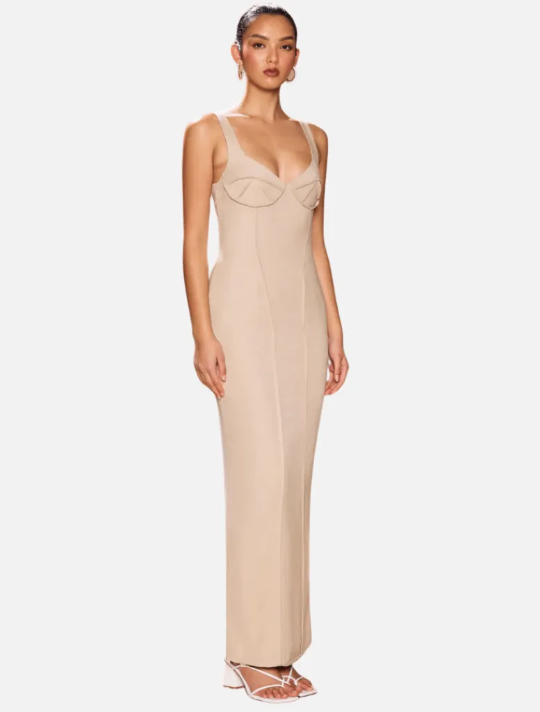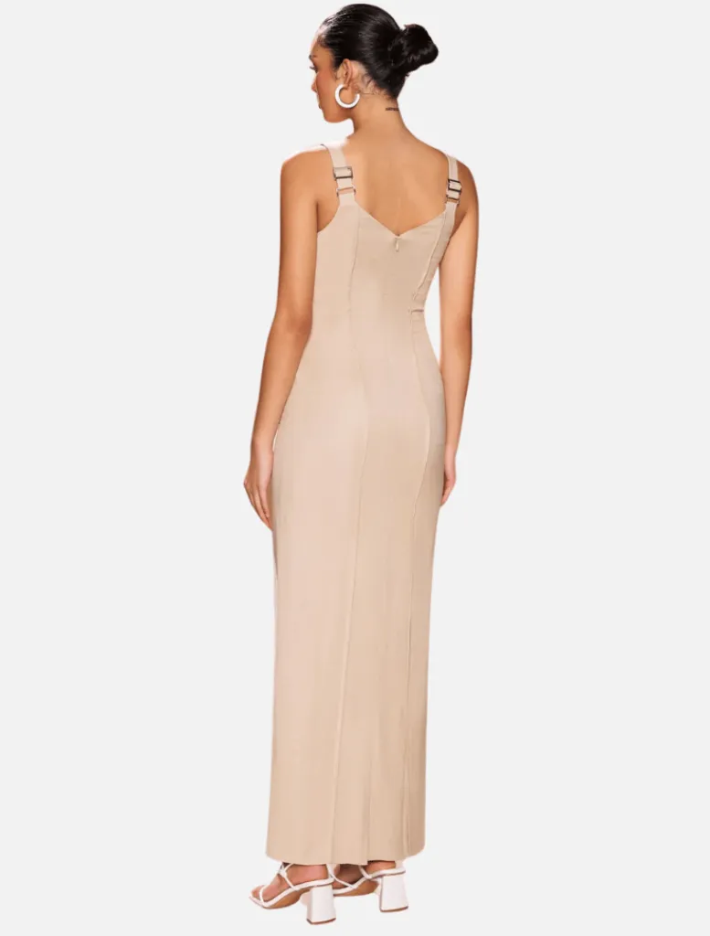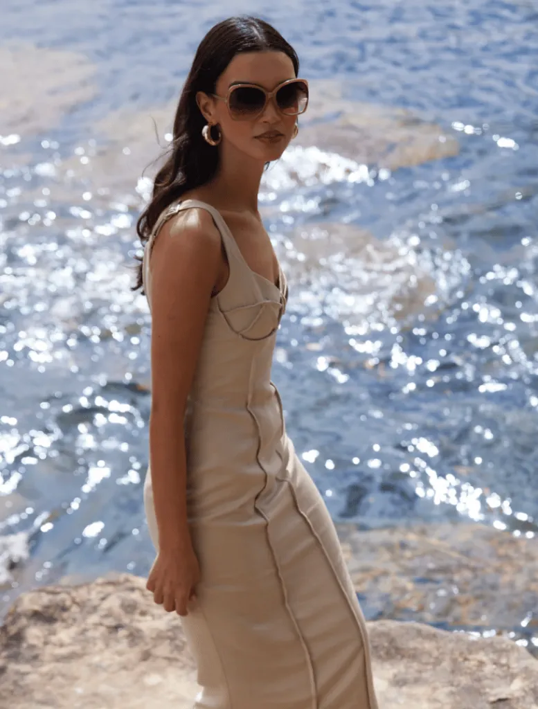 Cut from a summer blend of Linen and viscose the Amar Dress features hand crafted embossed detail to accentuate the graceful female curves. The dress showcases a flattering sweetheart neckline adorned with delicate detailing in an earthy natural beige to compliment all complexions along with adjustable shoulder straps. The Amar is sure to capture attention and turn heads.