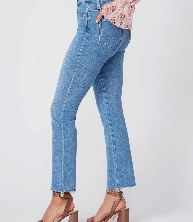 An effortlessly cool and super flattering high-rise straight leg that belongs in every wardrobe. This pair is crafted in PAIGE Vintage denim in a medium vintage-inspired wash with a raw stringy hem. PAIGE Vintage takes all of the work out of breaking in your favorite pair of vintage jeans. We’ve combined the comfort of stretch with everything you love about authentic vintage denim to create super soft jeans that feel perfectly lived-in from the very first wear.