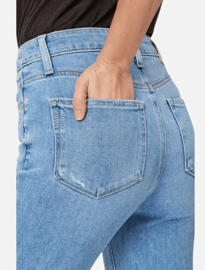 The Gemma Crop is our new high-rise skinny stovepipe leg that hits right above the ankle. Cut from our TRANSCEND VINTAGE denim in a bright, powdery blue wash with lived-in details and a raw hem, this style has the look of authentic vintage denim but is incredibly comfortable with plenty of stretch and recovery.