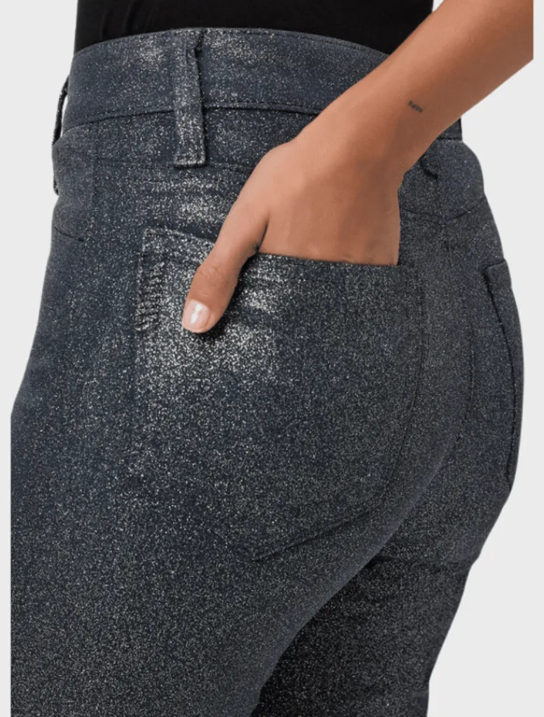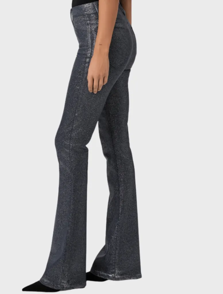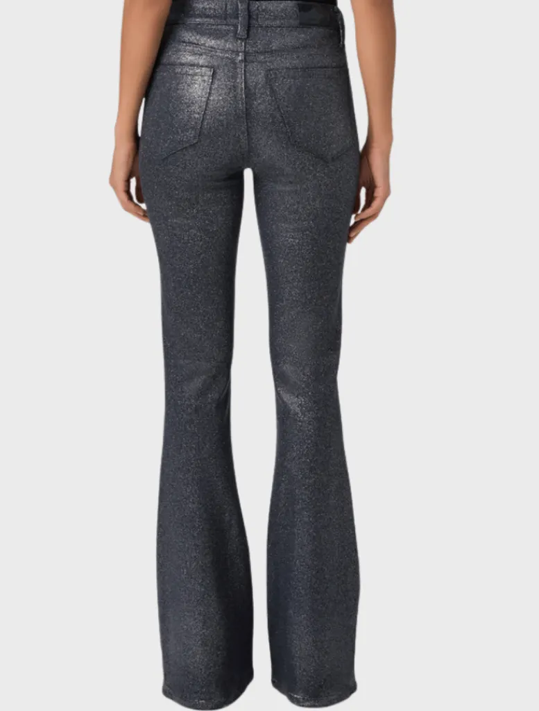 An elevated addition to your wardrobe, this high-waisted flare is fitted through the thigh and kicks out at the knee, creating an elongating silhouette. This on-trend style has a glittery, leather-like look, but doesn’t sacrifice comfort. Cut from our coated TRANSCEND denim in navy and silver shimmer, this style is luxuriously soft with plenty of stretch and recovery to give it a fit that shines all day and night.