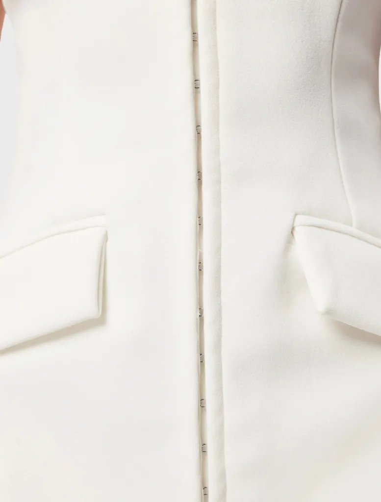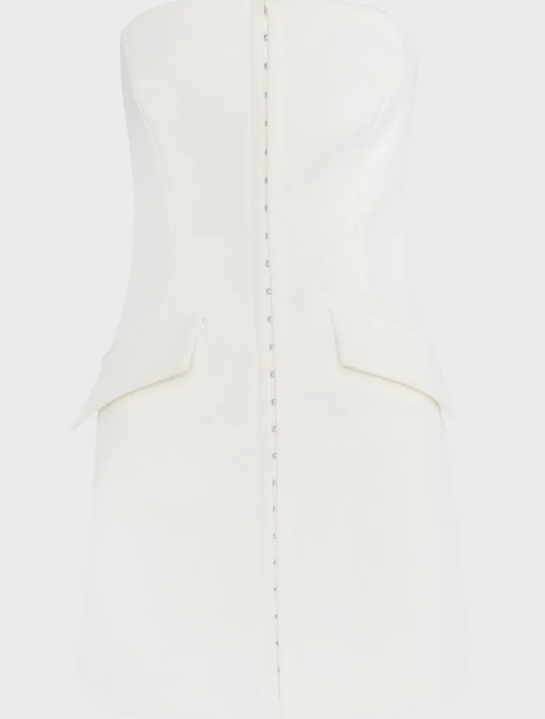 - Invisible back zip with hook and eye closure