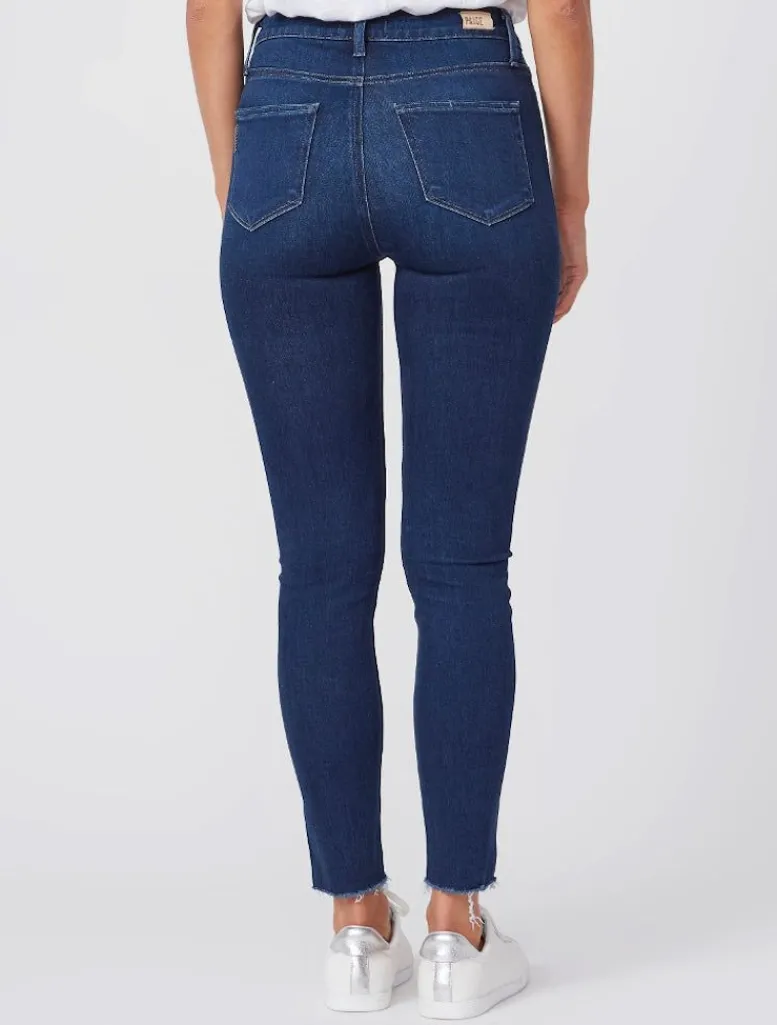 This ultra high-rise ankle length skinny comes in an easy, everyday dark wash that is endlessly versatile. Cut from Paige’s bestselling transcend vintage denim, this style has the look of authentic vintage denim but is incredibly comfortable with plenty of stretch and recovery.