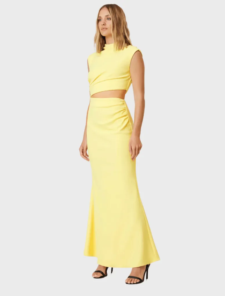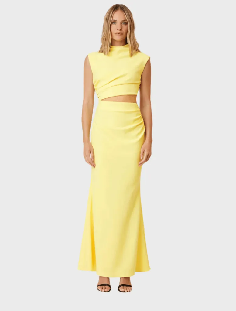 Introducing the Nola Gown by Elliott – the perfect combination of style and comfort. With its maxi length, side cut out, and high neckline, this gown will make you stand out in any event. The fitted and flared fit gives a flattering silhouette, while the short sleeves add a touch of elegance. Look your best in this gown!