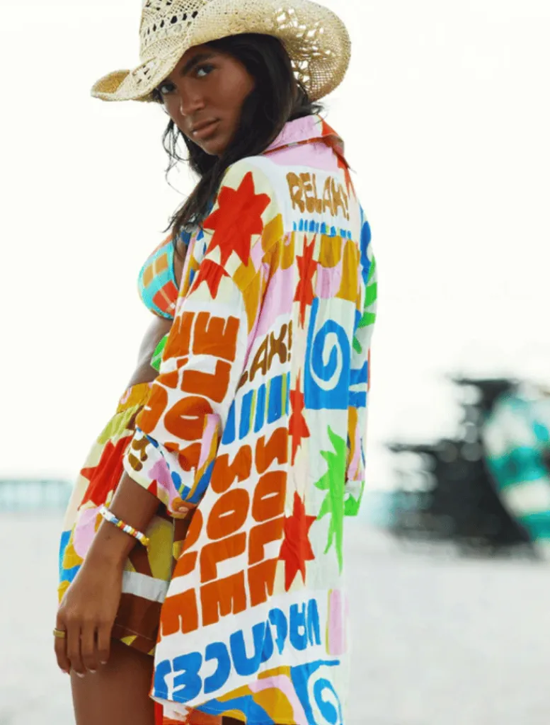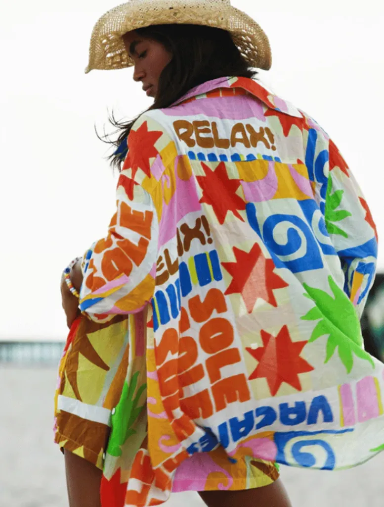 The Vacay Short in Relax, features our vacation-inspired print that sets the tone for leisurely days. Crafted from viscose material, this shirt offers a slightly sheer and super summery feel, perfect for soaking up the sun.